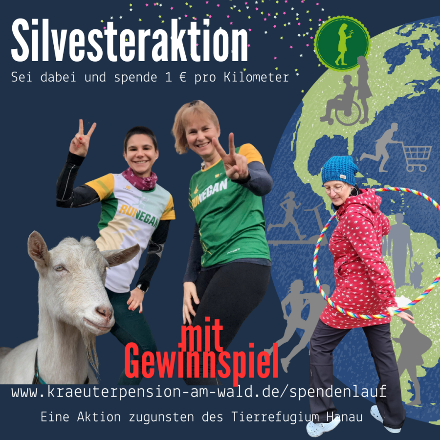 Ob Jogging, Wandern, Nordic Walking, oder Spazieren, du läufst deine Distanz auf deiner Lieblingsstrecke, oder bewegst Dich beim Yoga oder Hula Hoop, egal wo du auch sein magst. Mach mit bei unserer virtuellen Silvester-Spendenaktion jährlich am 31.12. für das Tierrefugium Hanau.
